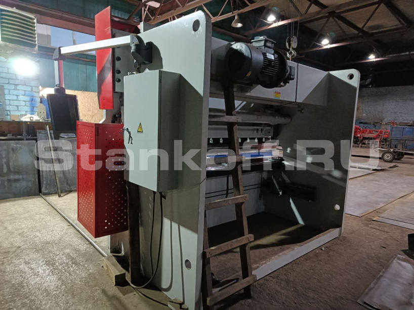 Усилие 1600 кН/ Длина гиба 3200 мм. Расстояние между колоннами 2410 мм. Глубина зева 330 мм. Ход пуансона 200 мм. Высота открытия 457 мм. Ход заднего упора 600 мм. Мощность 11 кВт.