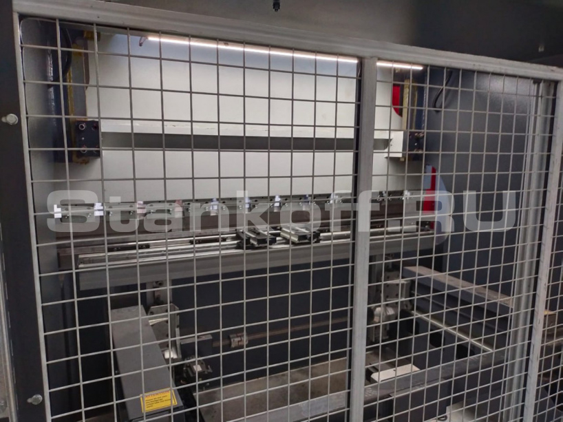 Во время пусконаладки были откалиброваны и настроены упоры листогибочного пресса, станок был подключен к электропитанию, была выполнена проверка направления главного двигателя и его кодировка, проверены установки концевых выключателей мертвой точки, проверка переключения с быстрого хода вниз на рабочий, матрица пресса была установлена в нужное положение. Произведена смазка ШВП и линейных направляющих. Были определены параметры гибки металла, с персоналом клиента был проведен инструктаж по работе со станком и его обслуживанию.