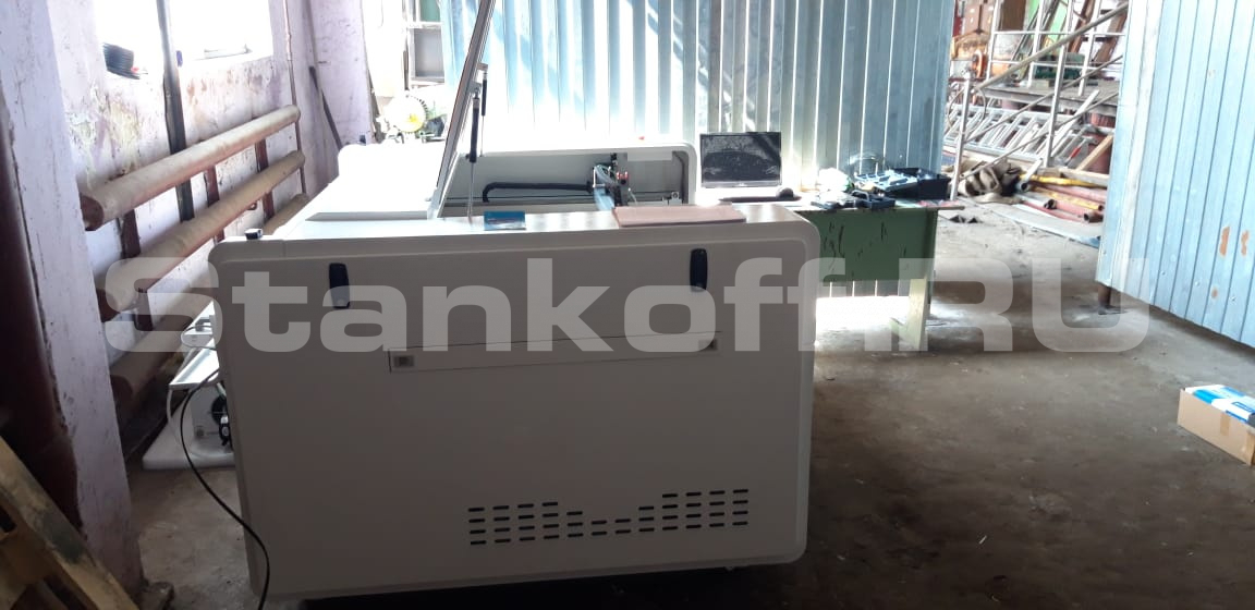 Рабочий стол – 1300х900 мм. Мощность трубки – 130 Вт. Ресурс – 10 000 моточасов. Потребляемая мощность – 2 кВт. Вес – 380 кг