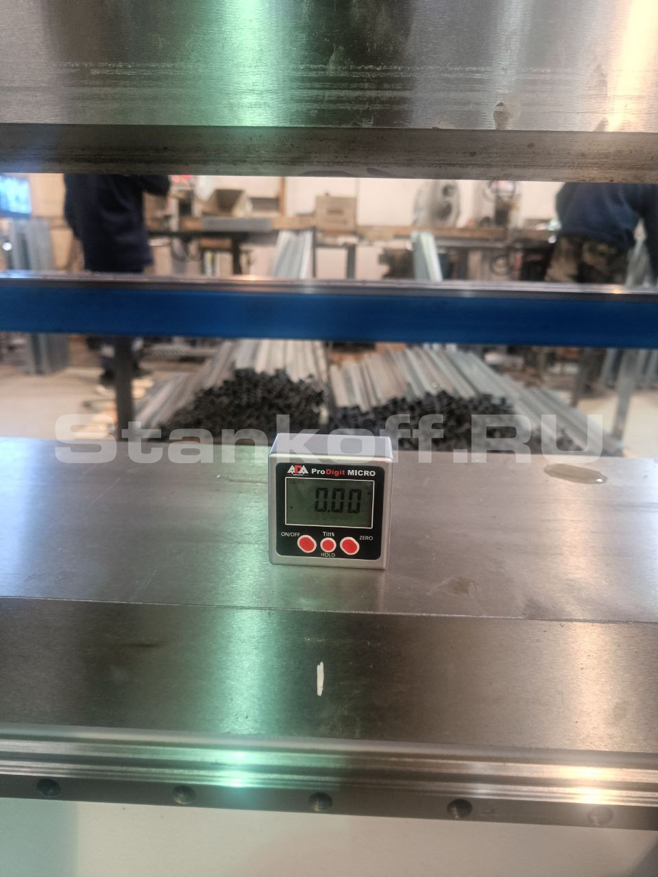 Во время пусконаладки были откалиброваны и настроены упоры листогибочных прессов, станки были подключены к электропитанию, была выполнена проверка направления главных двигателей и их кодировка, проверены установки концевых выключателей мертвой точки, проверка переключения с быстрого хода вниз на рабочий, матрицы прессов были установлены в нужное положение. Произведена смазка торсионных валов, ШВП и линейных направляющих. Были определены параметры гибки металла, с персоналом клиента был проведен инструктаж по работе со станками и их обслуживанию.