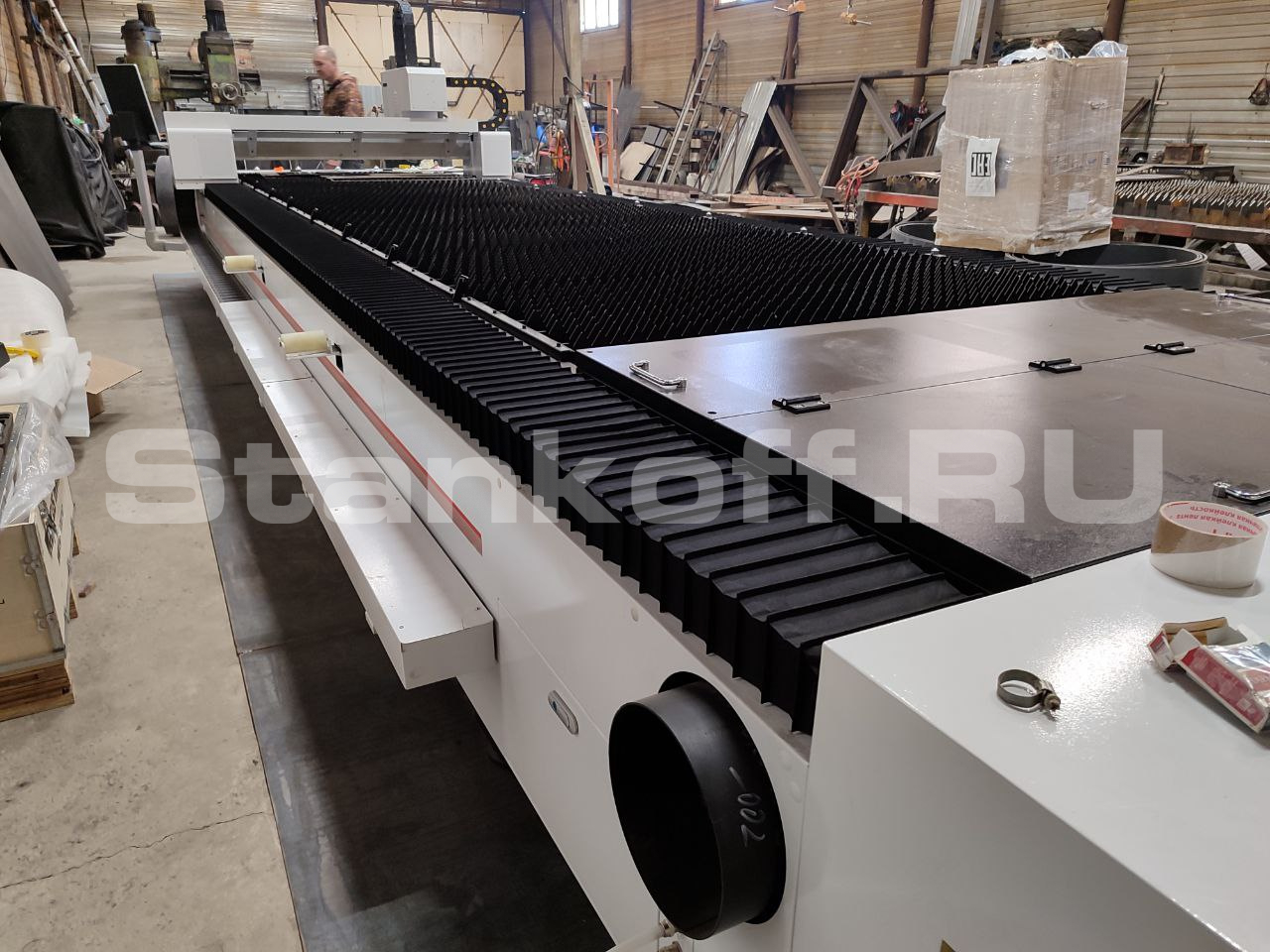 Рабочая зона – 1500x6000 мм; Источник – Raycus; Мощность лазера – 3 000 Вт.