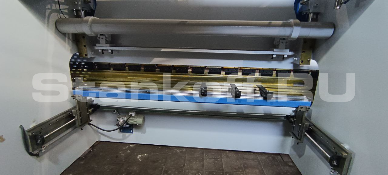 Во время пусконаладки были откалиброваны и настроены упоры листогибочного пресса, станок был подключен к электропитанию, была выполнена проверка направления главного двигателя и его кодировка, проверены установки концевых выключателей мертвой точки, проверка переключения с быстрого хода вниз на рабочий, матрица пресса была установлена в нужное положение. Произведена смазка ШВП и линейных направляющих. Были определены параметры гибки металла, с персоналом клиента был проведен инструктаж по работе со станком и его обслуживанию.