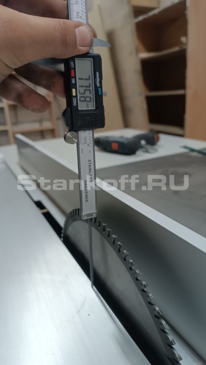 Роликовая каретка. Размеры каретки 3200х370 мм. Наклон пилы 0-45°. Суммарная мощность 6,6 кВт. Масса 680 кг.