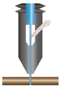 Работа WAZER основана на объединении пескоподобных абразивных частиц со струей воды, находящейся под большим давлением. Смесь выходит из сопла и разрезает заготовки с помощью микро-эрозионных процессов. Используемый в установке абразив называется "рубиновый песок". Он не токсичен и легко удаляется.