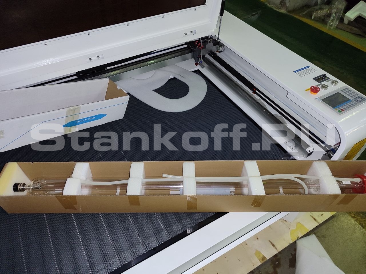 При проведении пусконаладочных работ станок был установлен в рабочей зоне. Была установлена и подключена лазерная трубка, произведена сборка системы охлаждения и аспирации, произведена отладка программного обеспечения, настройка оптического тракта, произведена юстировка станка, определены параметры резки. С персоналом клиента проведен инструктаж по работе со станком и по его техническому обслуживанию.
