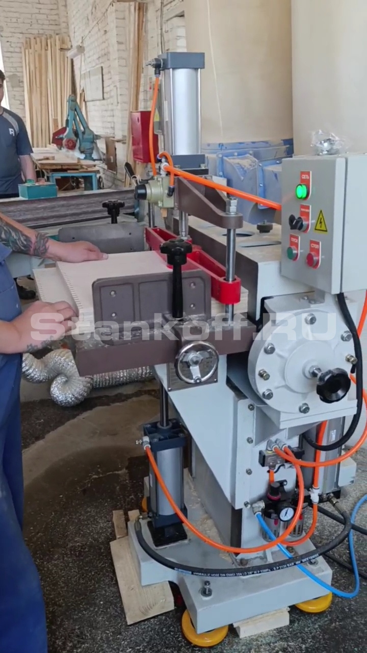 Предназначен для фрезерования прямых шипов на торцах деталей из древесины или фанеры. Применяется в деревообрабатывающем производстве при изготовлении тары, элементов мебели и столярных деталей.