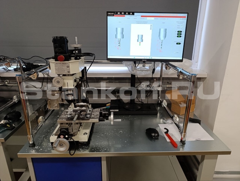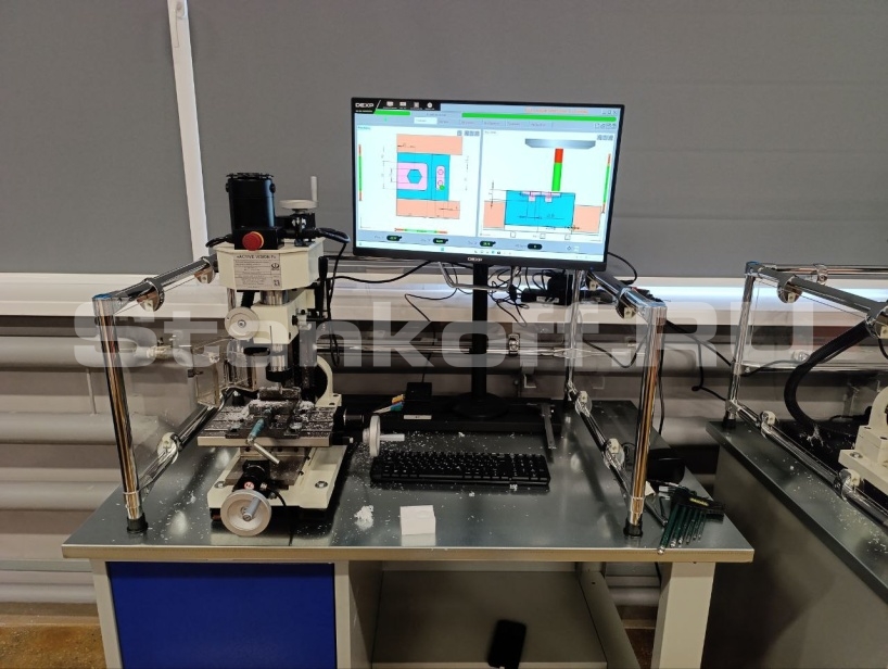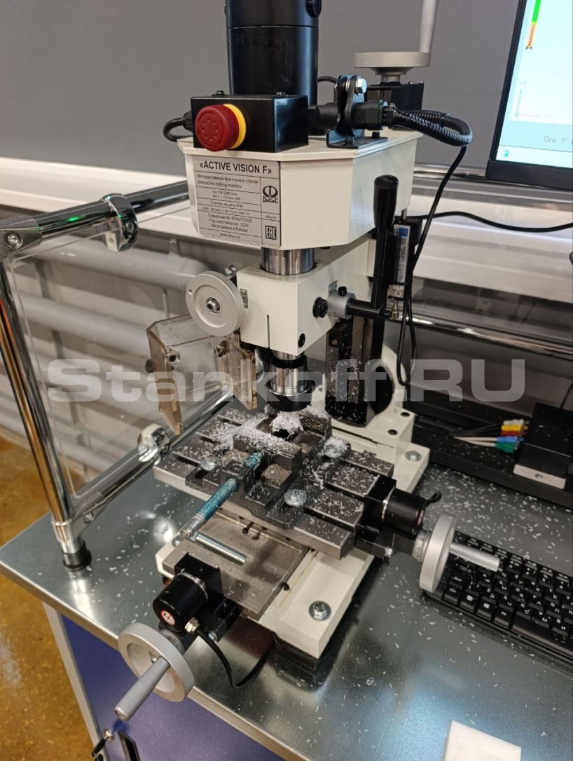 Интерактивный фрезерный станок модели «ACTIVE VISION F» представляет собой учебный комплекс, предназначенный для освоения основ металлообработки, изучения принципов работы фрезерных станков и формирования у учащихся базовых навыков изготовления деталей различной сложности. Комплекс построен на базе реального настольного фрезерного станка.