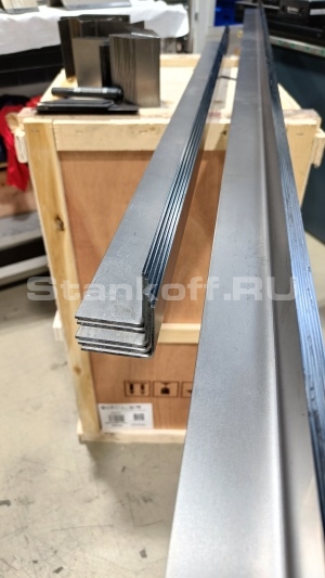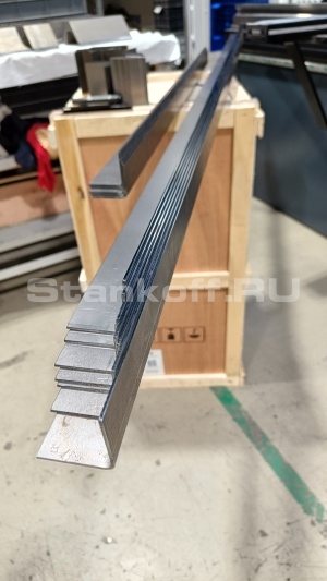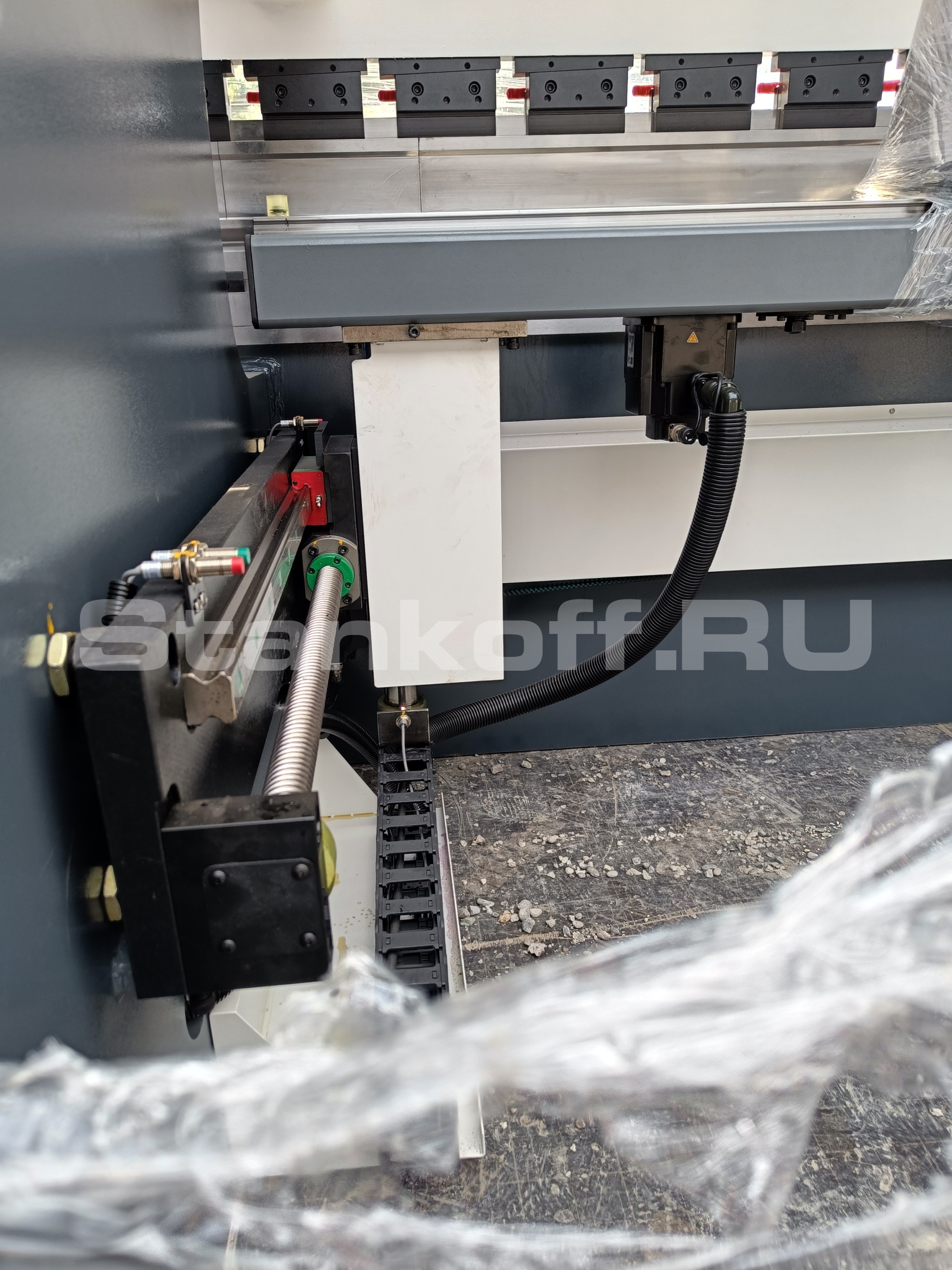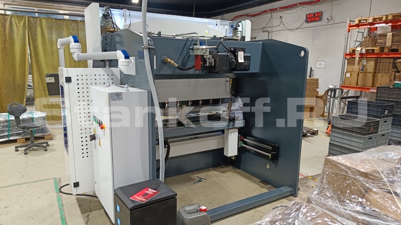 Во время пусконаладки были откалиброваны и настроены упоры листогибочного пресса, станок был подключен к электропитанию, была выполнена проверка направления главного двигателя и его кодировка, проверены установки концевых выключателей мертвой точки, проверка переключения с быстрого хода вниз на рабочий, матрица пресса была установлена в нужное положение. Произведена смазка ШВП и линейных направляющих. Были определены параметры гибки металла, с персоналом клиента был проведен инструктаж по работе со станком и его обслуживанию.