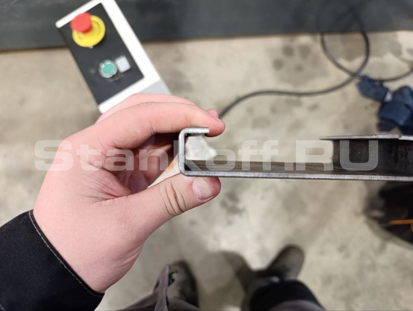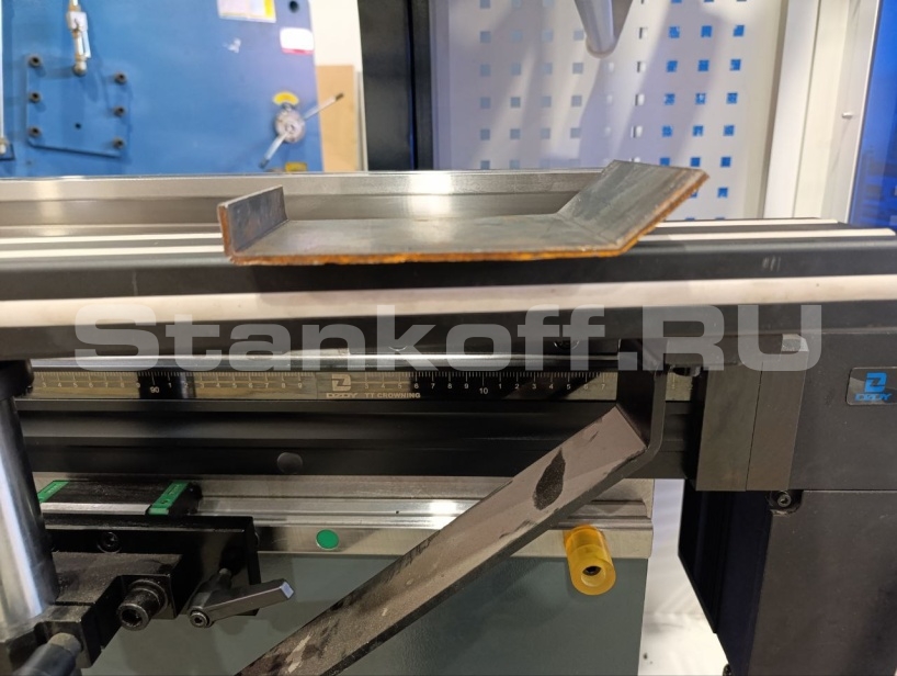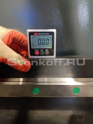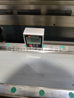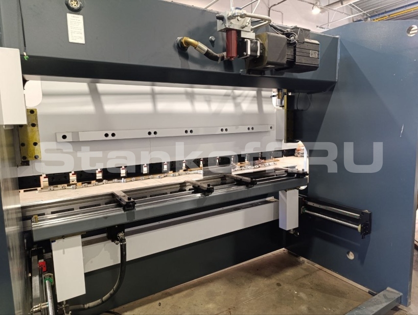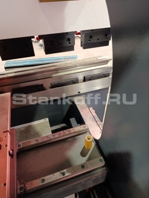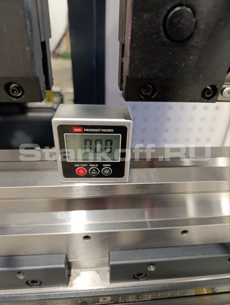 Во время пусконаладки были откалиброваны и настроены упоры листогибочного пресса, станок был подключен к электропитанию, была выполнена проверка направления главного двигателя и его кодировка, проверены установки концевых выключателей мертвой точки, проверка переключения с быстрого хода вниз на рабочий, матрица пресса была установлена в нужное положение. Произведена смазка ШВП и линейных направляющих. Были определены параметры гибки металла, с персоналом клиента был проведен инструктаж по работе со станком и его обслуживанию.