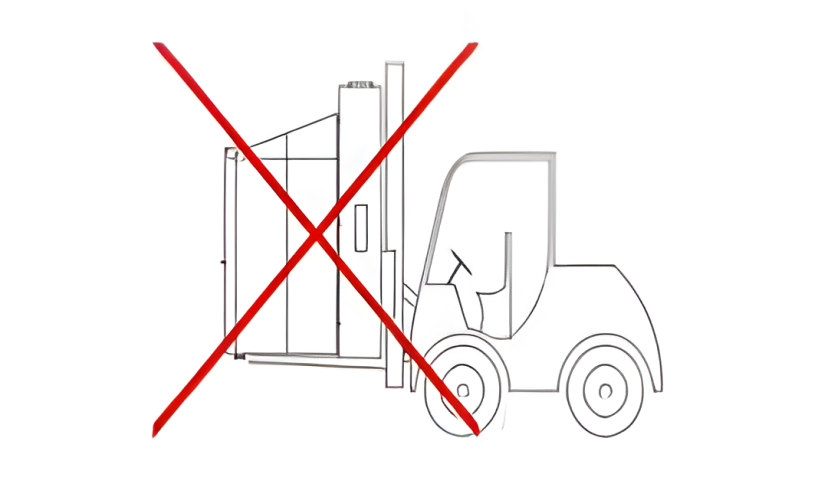 Так как центр тяжести расположен в верхней части станка и передняя часть станка тяжелее задней, необходимо соблюдать при его подъеме повышенную осторожность и следить за тем, чтобы станок не упал. Подъем станка за нижнюю часть станины запрещен. Никогда не поднимайте и не транспортируйте станок вилочным погрузчиком!