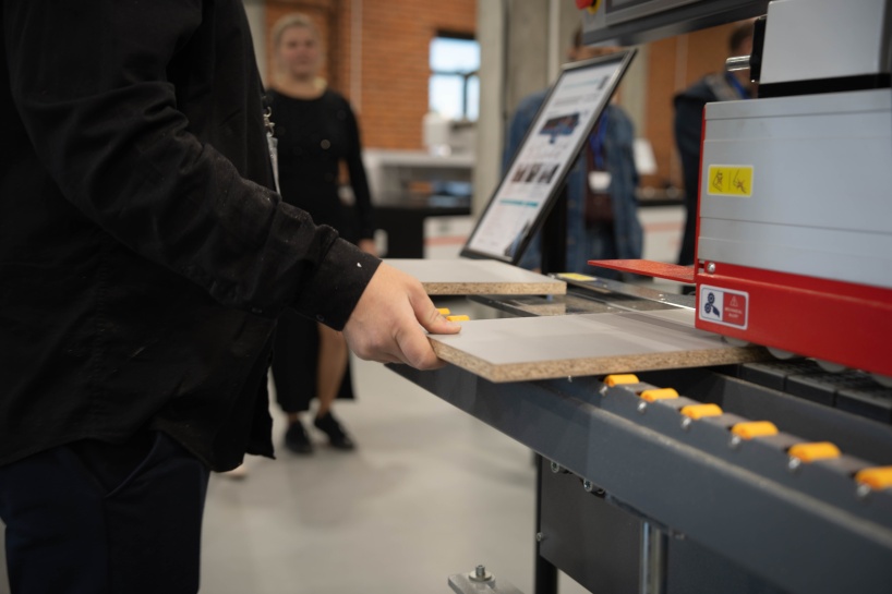 ✨ Наши гости познакомились с финишной обработкой на кромкошлифовальном станке RK MS-2S, который шлифует кромки с двух сторон.