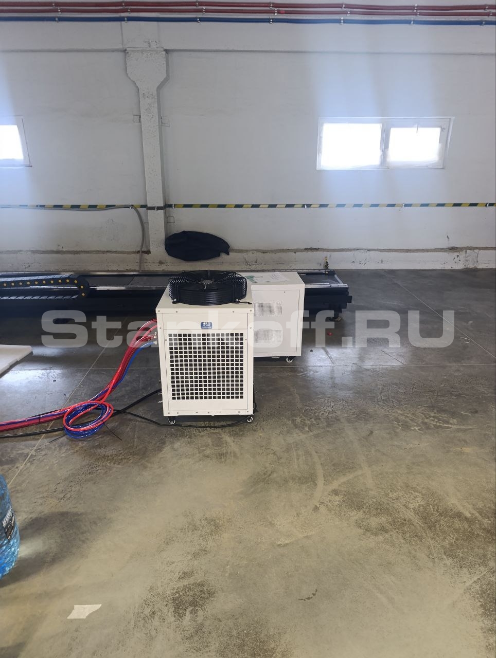 При проведении пусконаладочных работ было выполнено: извлечение станка из упаковки, установка станка в рабочей зоне, настройка координатной системы X перпендикулярно Y, установка сервомоторов, укладка кабелей к шкафу управления, укладка магистрального охлаждения и сборка чиллера. Труборез был установлен относительно оси Y, произведена калибровка оси вращения трубореза и её привязка к координатной системе станка, опробование станка и юстировка. Персонал клиента был обучен работе со станком, его техническому обслуживанию и самостоятельному подбору параметров резки.