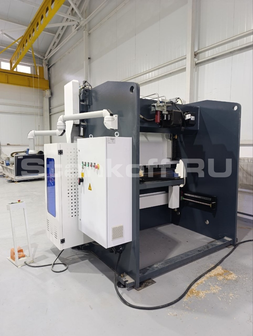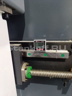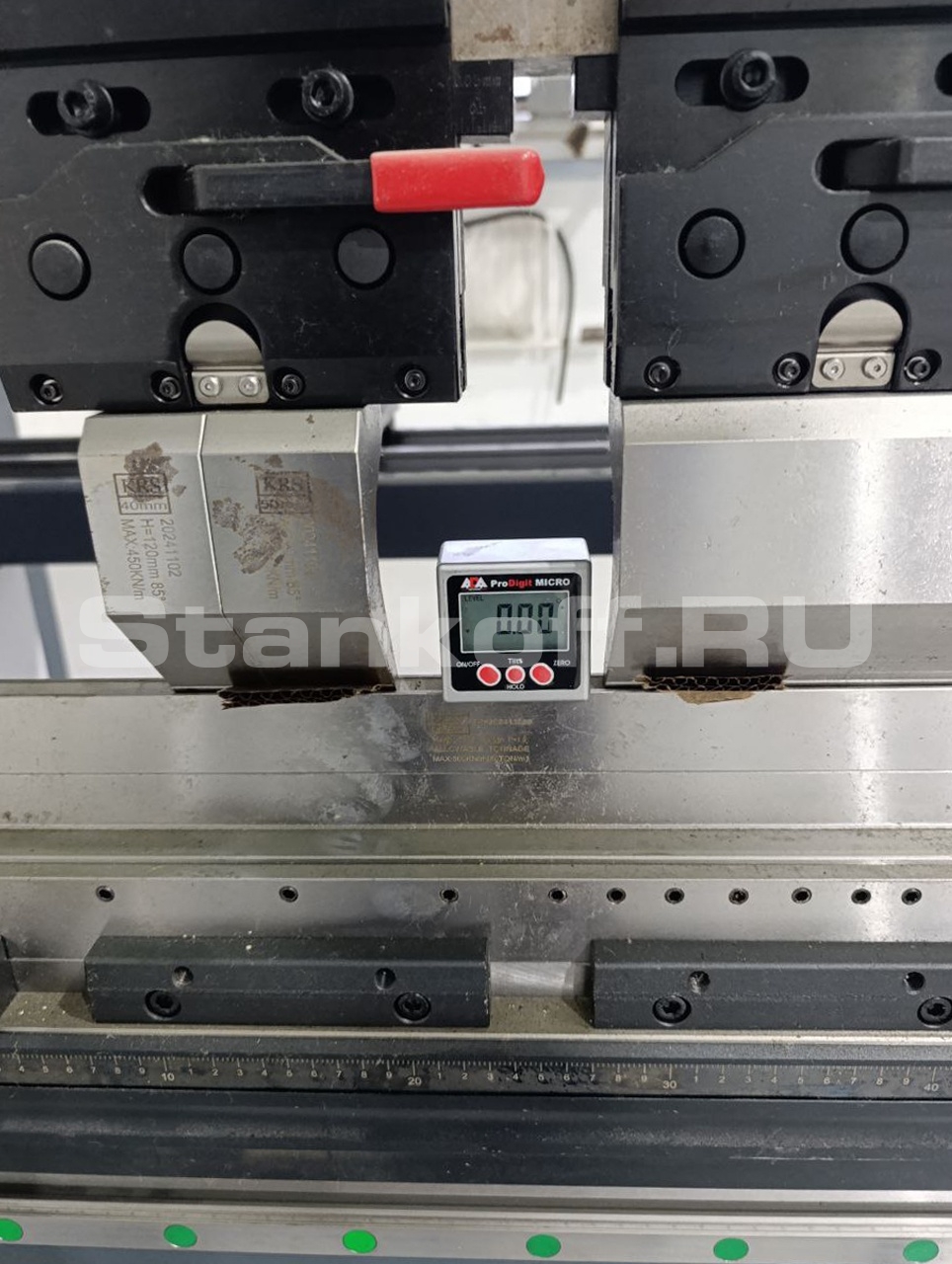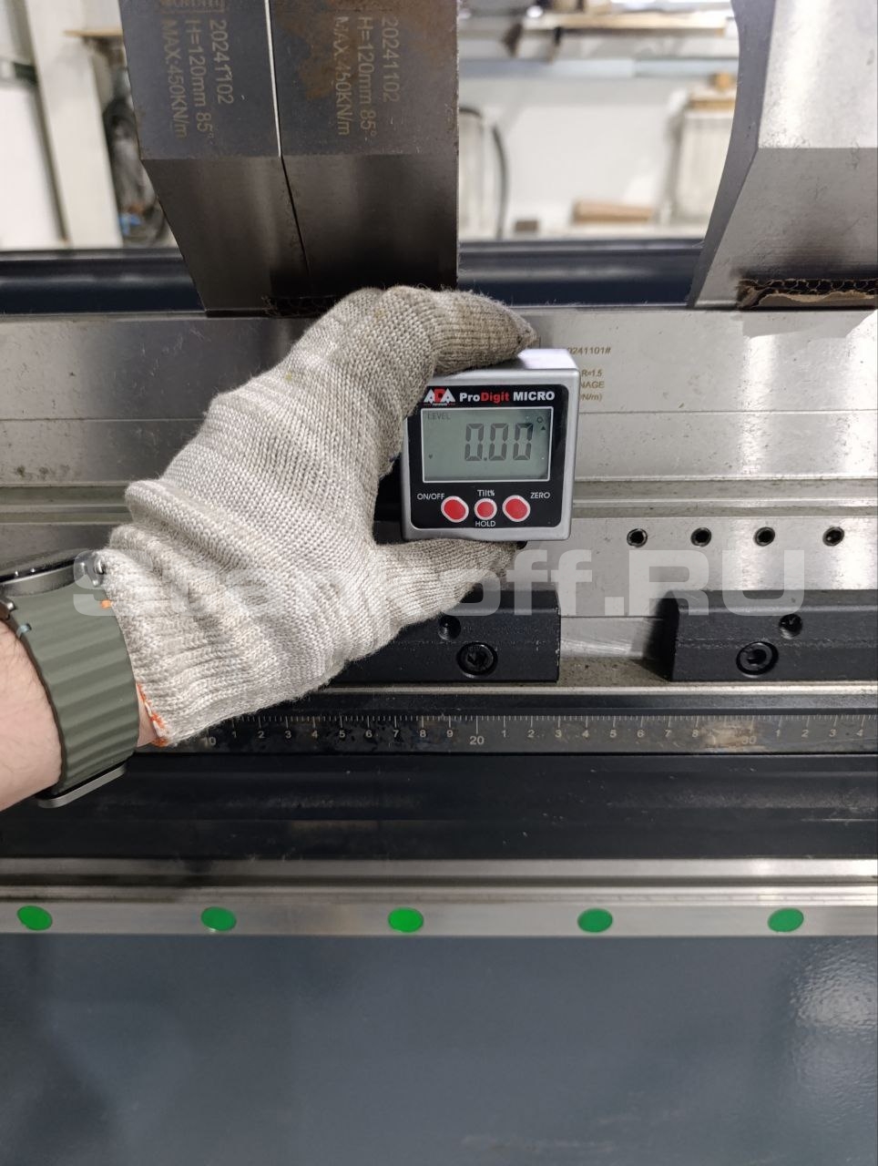 Во время пусконаладки были откалиброваны и настроены упоры листогибочного пресса, станок был подключен к электропитанию, была выполнена проверка направления главного двигателя и его кодировка, проверены установки концевых выключателей мертвой точки, проверка переключения с быстрого хода вниз на рабочий, матрица пресса была установлена в нужное положение. Произведена смазка ШВП и линейных направляющих. Были определены параметры гибки металла, с персоналом клиента был проведен инструктаж по работе со станком и его обслуживанию.