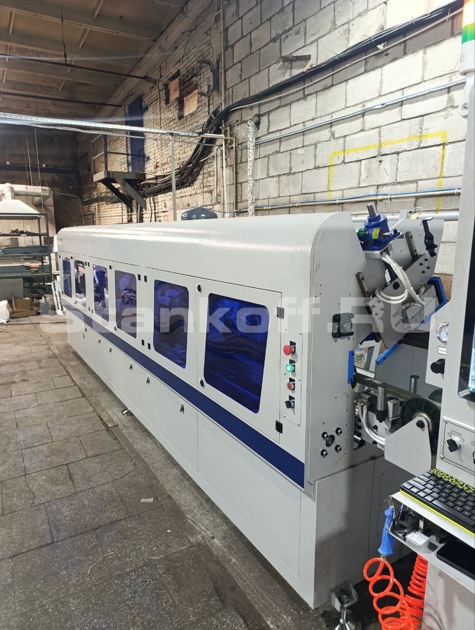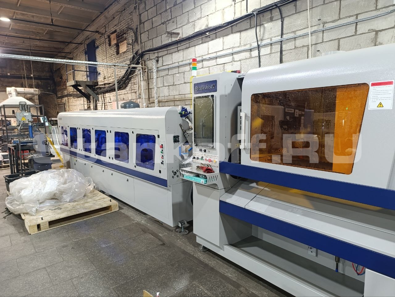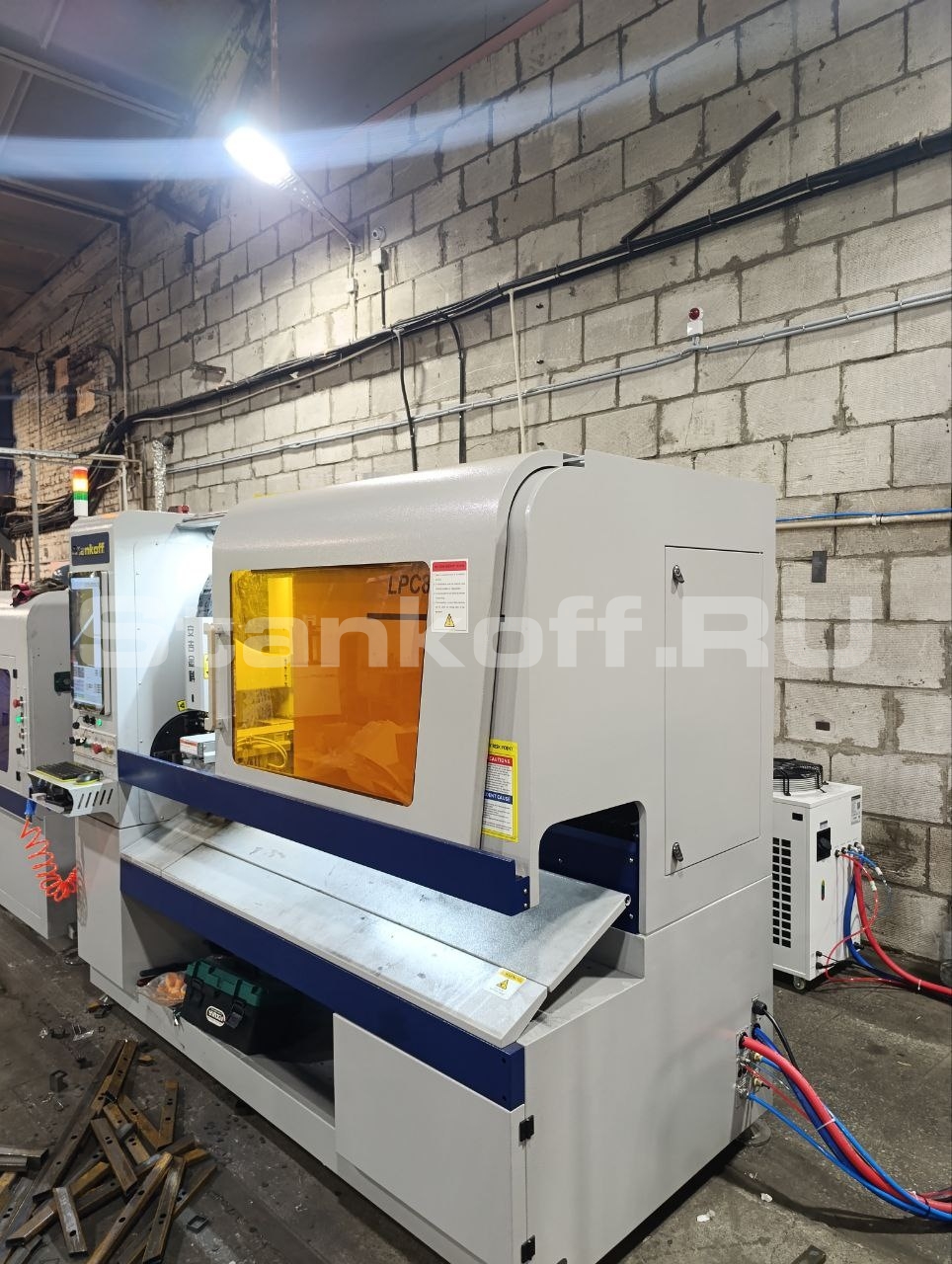 Оптоволоконный лазерный труборез был распакован, установлен в рабочей зоне и выставлен по уровню. Осуществлена разводка кабельных линий по исполнительным элементам и системам управления. После подключения чиллера, была произведена коммутация шкафа, произведен пуск станка и юстировка, отработаны параметры резки труб. Персонал клиента был обучен работе со станком, его обслуживанию и самостоятельному подбору параметров резки.