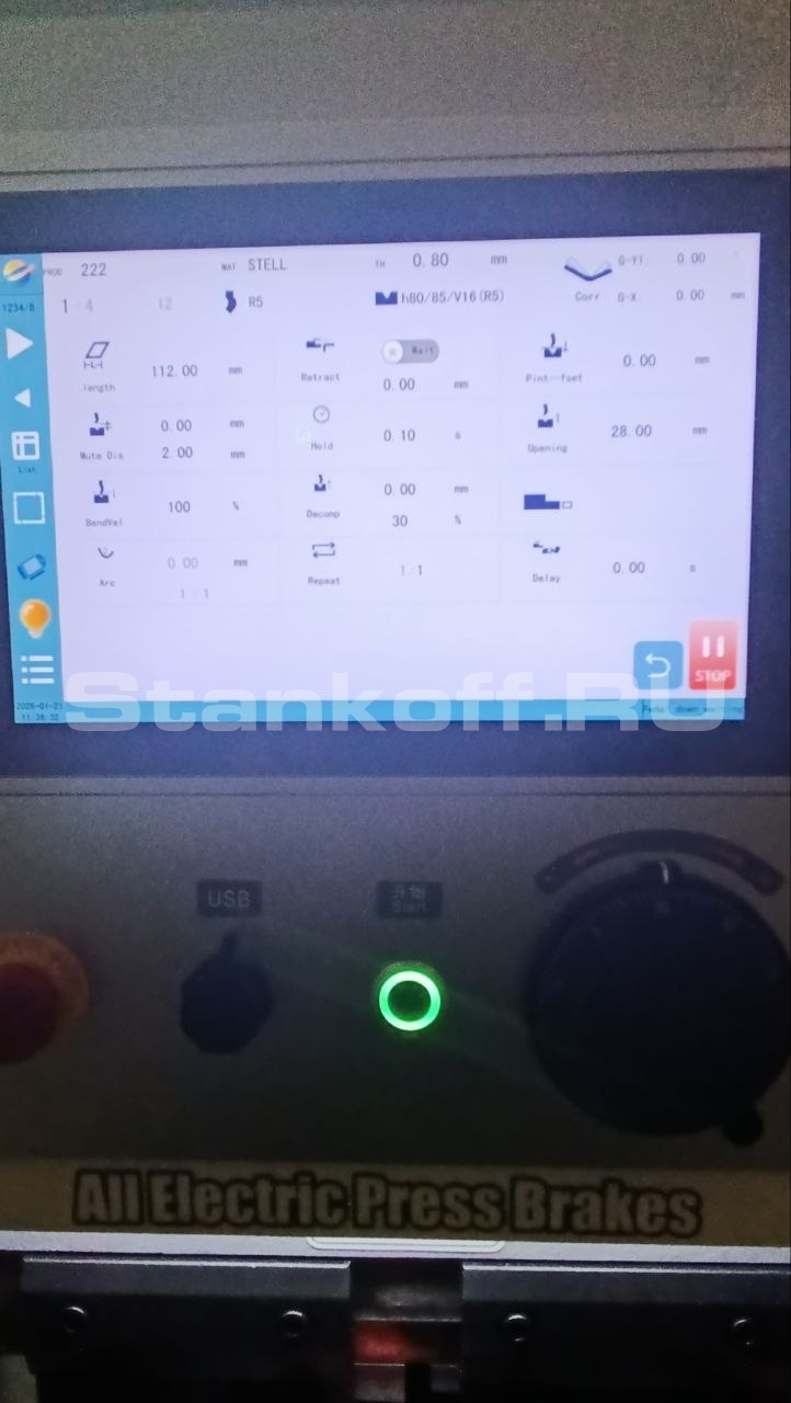 Во время пусконаладки листогибочный пресс был подключен к электропитанию, была выполнена проверка работы серводвигателей, установка инструмента. Были определены параметры гибки металла, с персоналом клиента был проведен инструктаж по работе со станком и его обслуживанию.