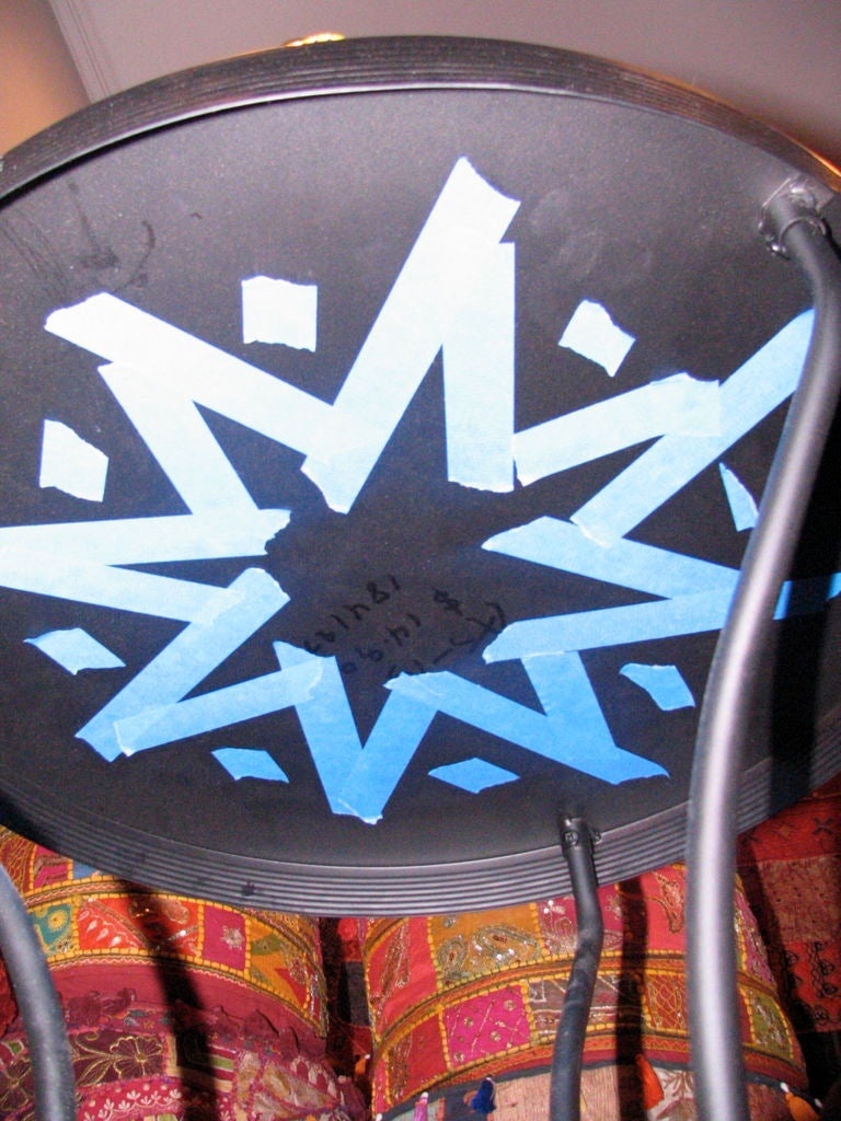 Мы начинали со случайного орнамента, в котором была только одна крышка для бутылки от каждого вида, который был у нас в заначке для крышек. Это оставило место для некоторых повторов, поэтому мы выстроили узор вокруг круглой формы стола.