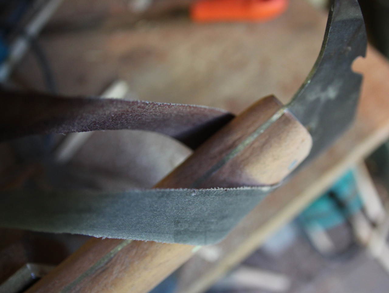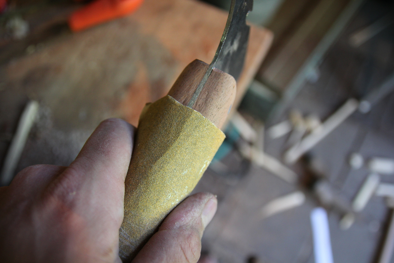 Теперь, когда детали склеены, пора придать ручке удобную форму. Я использовал рашпиль, файлы и наждачную бумагу. Полоса наждачной бумаги хорошо подойдет для шлифования краев.