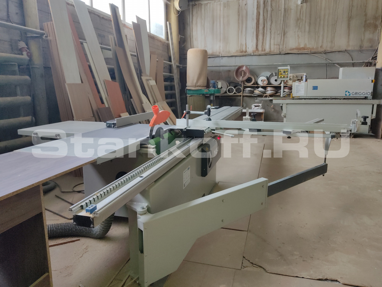 Роликовая каретка. Размеры каретки 3200х370 мм. Наклон пилы 0-45°. Суммарная мощность 6,6 кВт. Масса 680 кг.