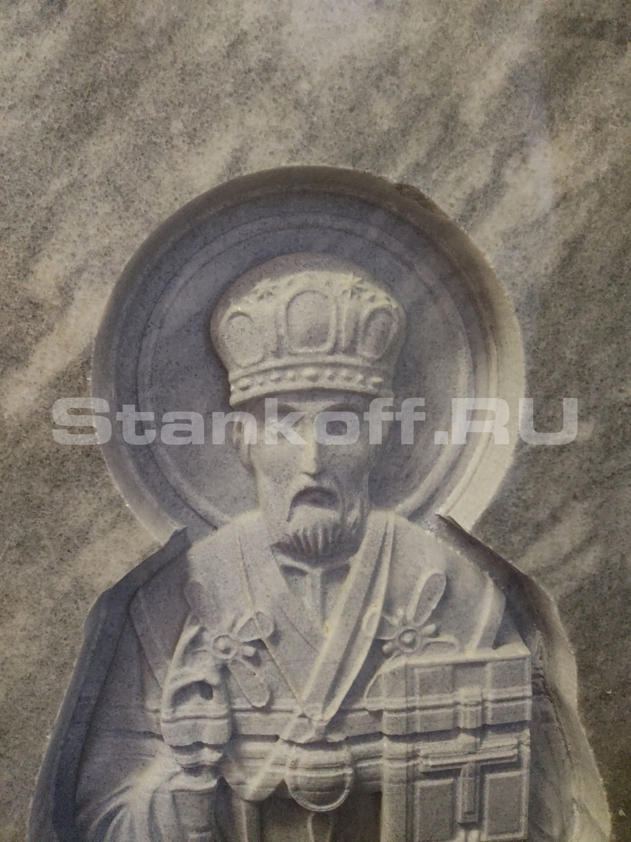 - В основном это мрамор или гранит. Углубление мы обычно вырезаем до 8-10 см. Станок, по-моему, рассчитан до 30 см, но мы таких фрез еще не видели, мы ими не пользуемся. Памятник толщиной 100 мм мы спокойно обрабатываем на данном станке.