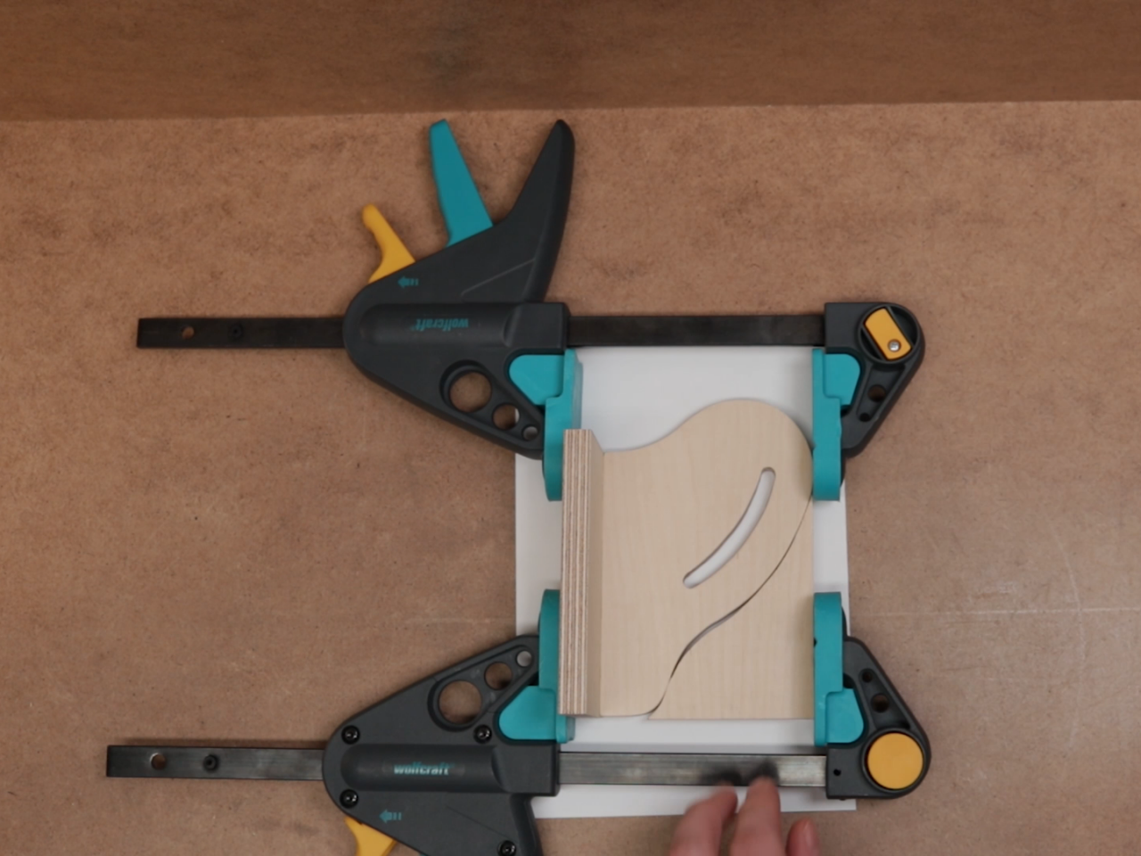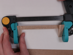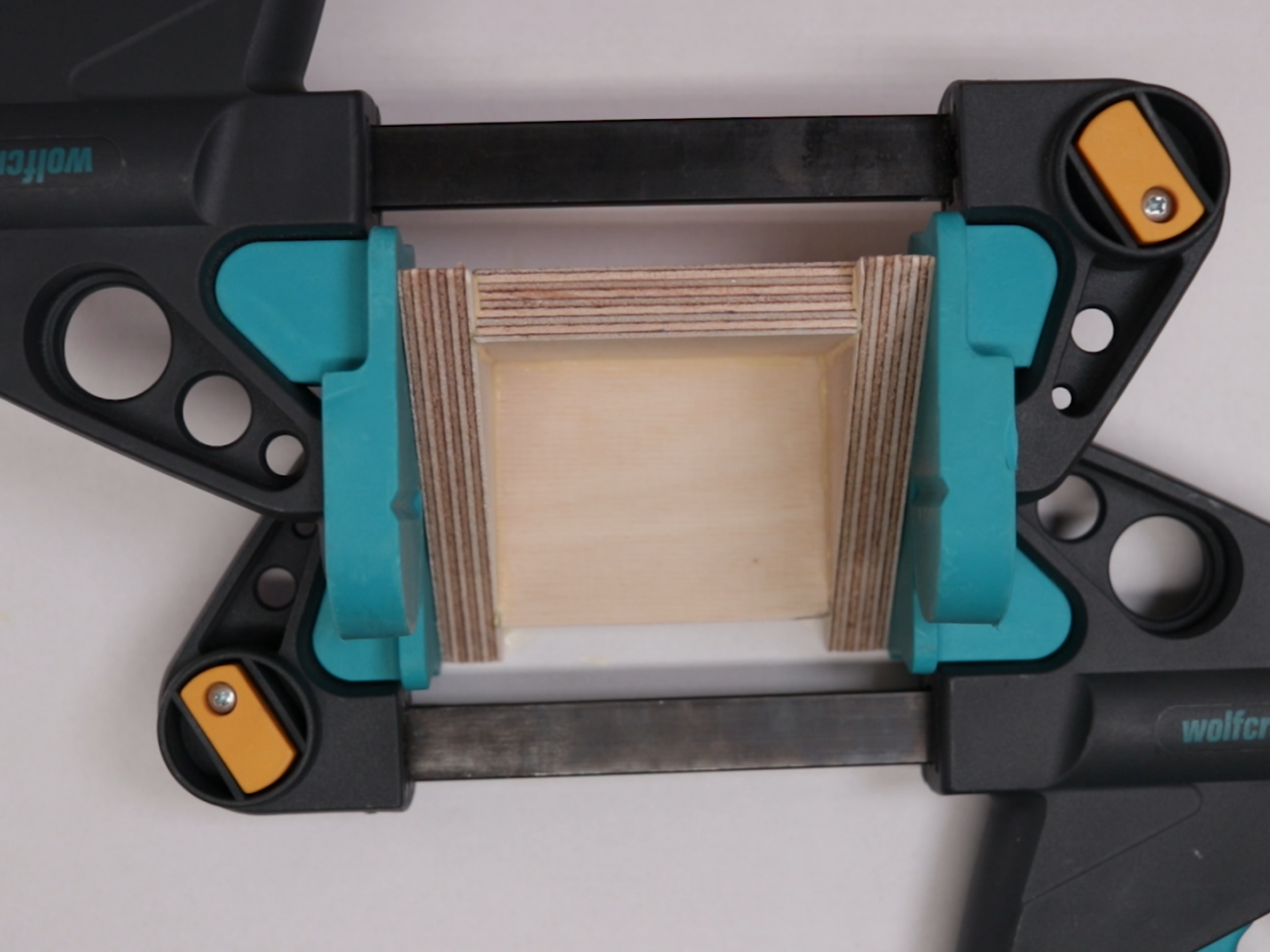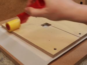 Чтобы выровнять верхнее колесо перпендикулярно основанию, я приклеил временный лист фанеры и использовал несколько квадратов и линейку. Только не забудьте предварительно отшлифовать детали, чтобы они плавно скользили.