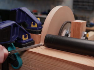 Сначала я подрезал колесо, чтобы баланс был более приличным. Я придал колесам форму, чтобы они имело корону внутри и снаружи, чтобы лезвие не соскользнуло с колеса. В конце концов, это проект, сделанный своими руками, так что дополнительная безопасность не повредит, я так думаю.