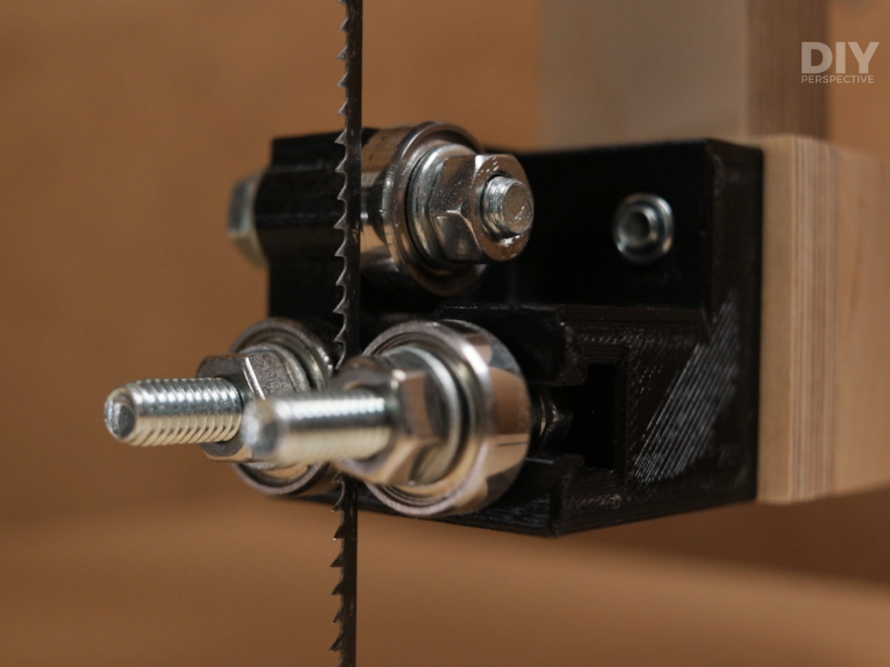 Причина, по которой я отказался от регулировки угла наклона верхнего колеса, которая есть у всех коммерческих ленточных пил, заключается в том, что мы собираемся использовать эту ленточную пилу только с несколькими типами лезвий. Поэтому, как только я настрою для них положение, мне больше не нужно будет его менять. Я все равно слишком ленив, чтобы менять лезвия, так зачем же все усложнять, правда? И если когда-нибудь мне это понадобится по волшебству, я могу очень легко его модифицировать, так как все крепится винтами.