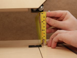 Чтобы знать, где сделать отверстия в нижней части стола, вы можете разместить шаблон и пробить отверстия, а затем перенести их на деталь. Как и раньше, мы должны сделать более широкие отверстия для регулировки. Но эти болты M6 с шестигранной головкой и шайбами должны быть заподлицо с поверхностью, так как здесь будет лежать верхняя часть стола.