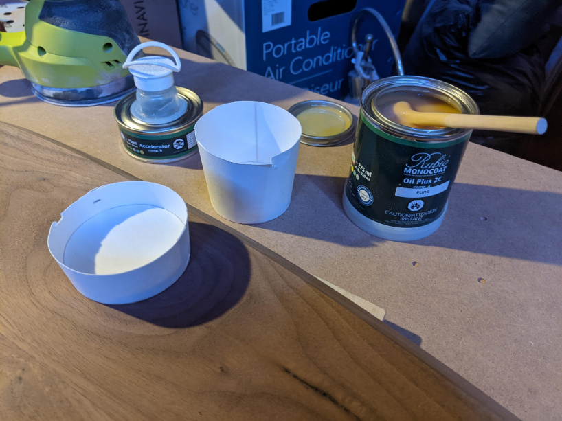 Снимите фурнитуру с доски и приступайте к нанесению финишного покрытия. Смешайте или нанесите финишное покрытие в соответствии с указаниями на этикетке. Дайте финишному покрытию затвердеть в соответствии с указаниями (я оставил его на пару дней).