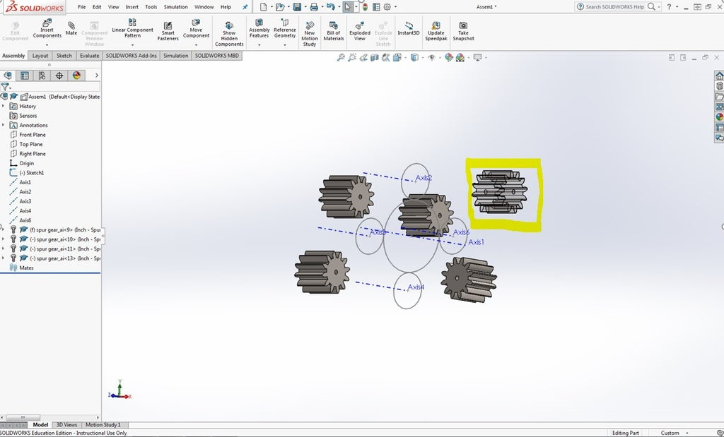 Этот шаг предназначен только для тех, кто следит за Solidworks и хочет визуализировать свою зубчатую передачу: вам нужно будет совместить свои шестерни с эскизом, так как он центрирует их и убедитесь, что они все выровнены. Следуйте пошаговым инструкциям в примечаниях выше, чтобы увидеть, как я справился.