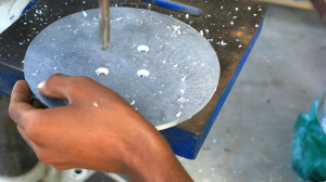 Как только я закончил с этим, то тщательно обработал печатную плату, чтобы не повредить обмотку. Перед повторной сборкой двигателя я просверлил отверстия в барабане двигателя для шлифовальной пластины, а для изготовления шлифовальной пластины я использовал алюминиевый лист толщиной 6 мм.