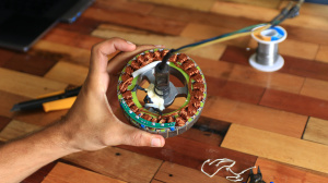 Решением была бы перемотка статора, но это займет много времени, поэтому вместо этого я перемонтировал исходную обмотку. Поскольку это трехфазный двигатель, каждая фаза имеет три комплекта, каждый из которых имеет три полюса, и все они соединены последовательно. Я перемонтировал обмотку так, чтобы все три набора были подключены параллельно. Это заставляет ток течь в три раза быстрее по сравнению с последовательным соединением, заставляя двигатель вращаться в три раза быстрее.