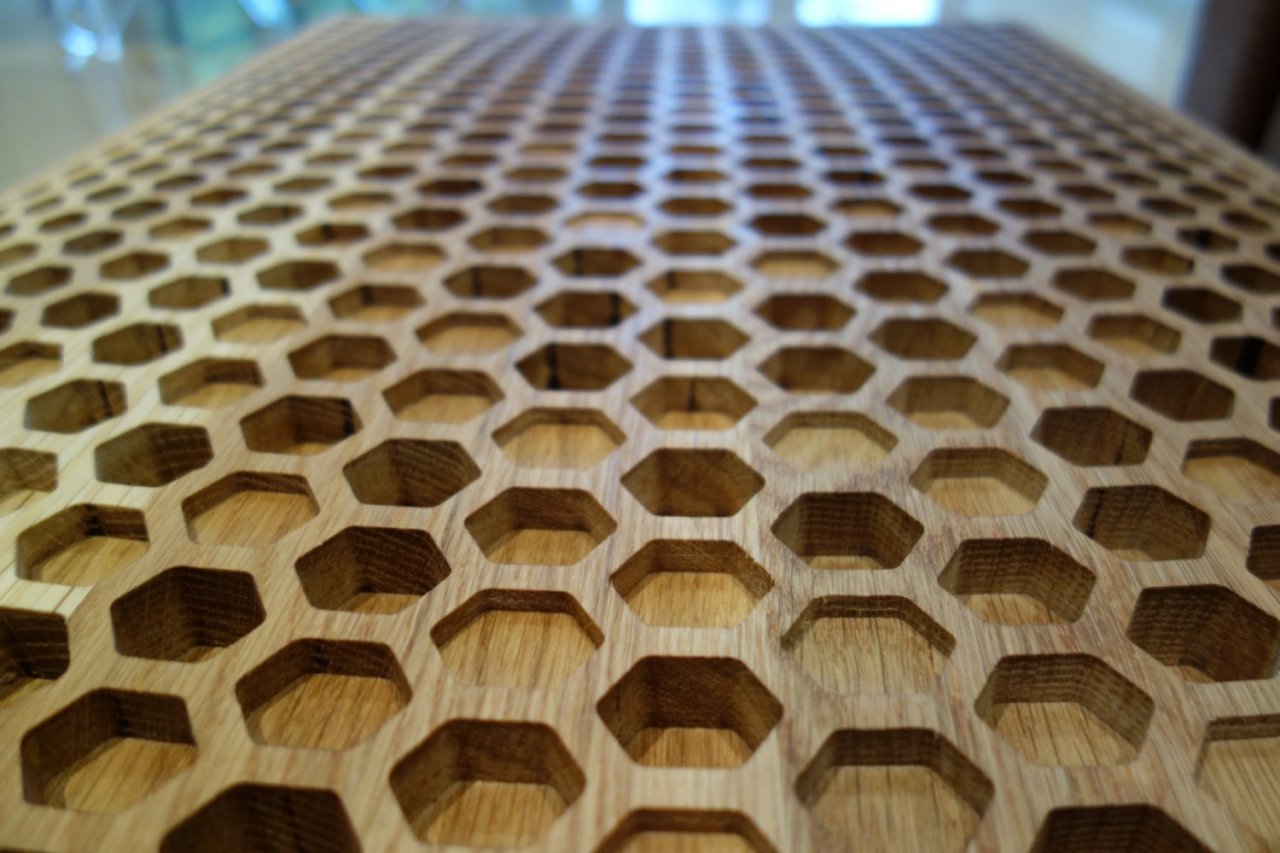 В целом ничем не примечательный стол. Его фишка в том, что в центральных сотах есть «мёд» из меди