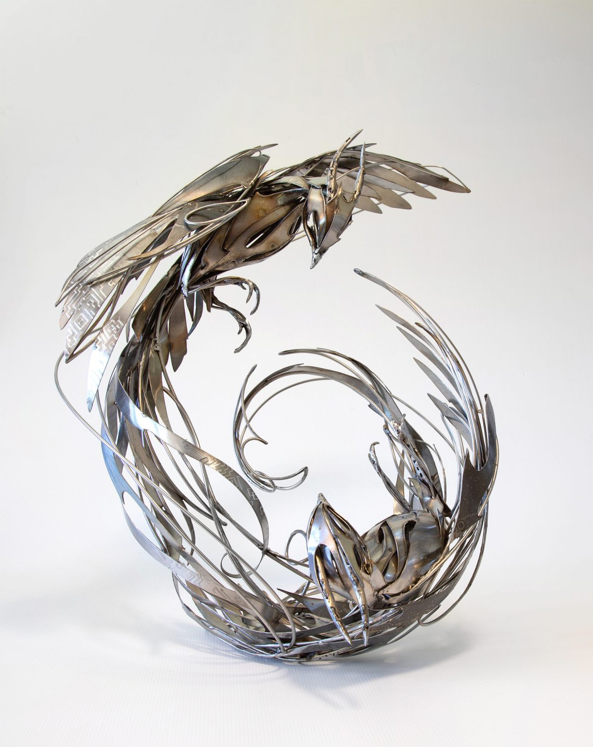 Австралийский скульптор и инсталлятор Джорджи Секкулл создаёт масштабные скульптуры из нержавеющей стали, изображающие животных и других существ, которые, словно находятся в движении. Множество частей, вырезанных из листов металла придают скульптурам органическую форму и позволяют создавать такие детали как перья, чешую, крылья или клешни ракообразных.