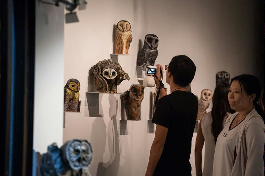 Не знаю те совы кем кажутся или нет но работы выполнены так что совы как живые. Особенно если взять из представленных фотографий ту где совы сидят на снегу на улице. Если не знать что это скульптуры то можно сказать что совы на снегу реально живые. Очень красивые экспонаты. Золотые руки мастера.