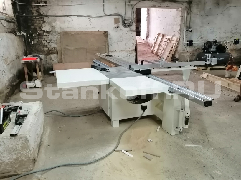 Роликовые направляющие Длина каретки: 3200 мм Вылет пилы: 80 мм Мощность: 6,25 кВт Масса: 630 кг