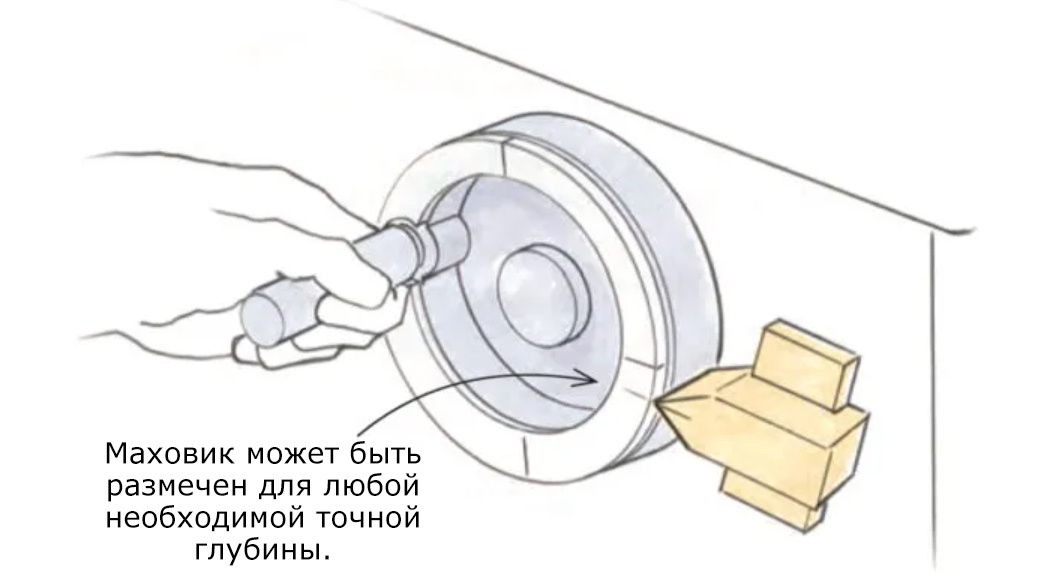 Хотя на маховике можно было сделать отметки для различных высот, можно прикрепить кольцо из ДВП, чтобы сделать отметки более заметными. Разделите кольцо на секторы, чтобы отмечать интервалы высотой 1,59 мм.