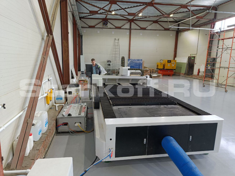 При проведении пусконаладочных работ лазерный станок был установлен в рабочей зоне и выставлен по уровню. После регулировки положения элементов координатной системы, были собраны компоненты кабельной сети, системы охлаждений и аспирации. Осуществлена разводка кабельных линий по исполнительным элементам и системам управления. Оптоволоконный лазер был подключен к сетям, была произведена отладка программного обеспечения, настройка оптического тракта, были подобраны параметры резки под задачи клиента. С персоналом заказчика был проведен инструктаж по работе на станке и по его техническому обслуживанию.