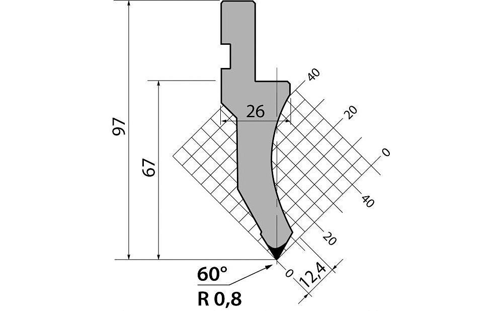 Данными пуансонами возможна гибка листового металла на угол от 75° до 180°. Необходимый угол гибки может быть задан конкретной величиной вертикального перемещения траверсы листогиба, углом пуансона, закреплённого на ней, углом матрицы, а также углом пружинения конкретного материала, который подвергается гибке. Пуансоны с большой величиной радиуса при вершине предназначен для гибки средних и...