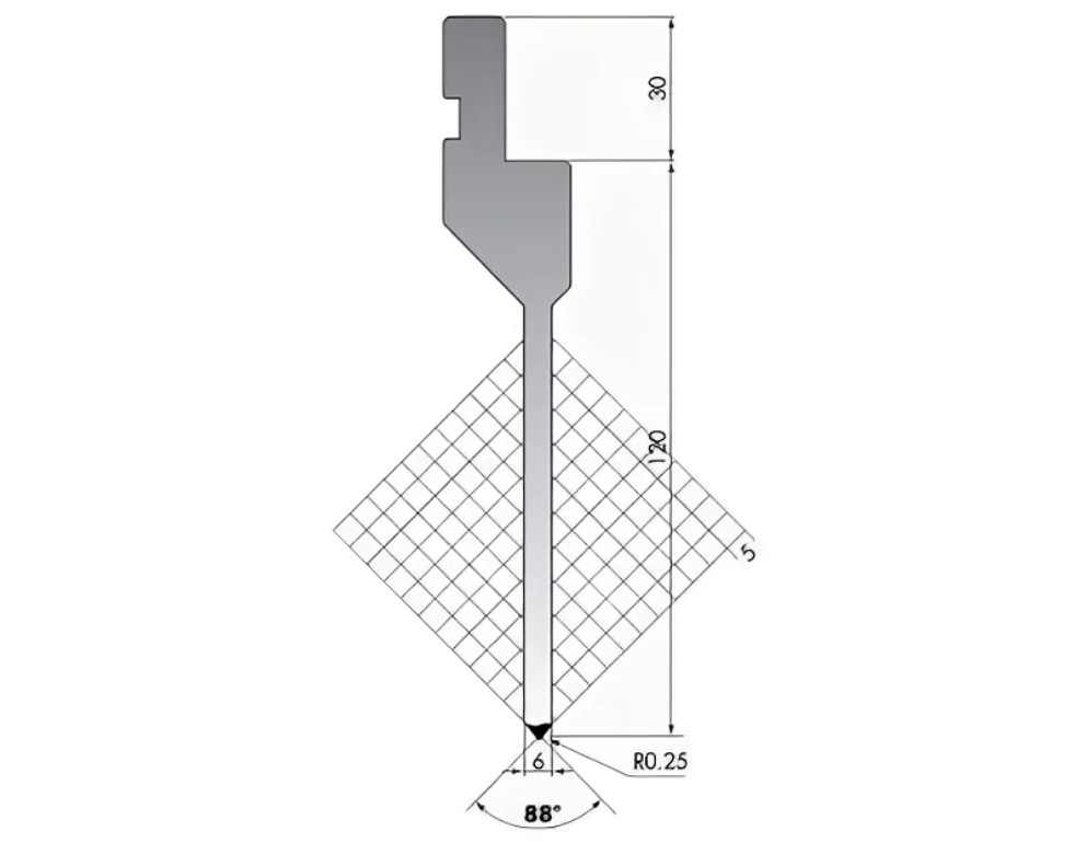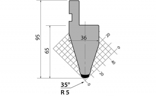 Данными пуансонами возможна гибка листового металла на угол от 85° до 180°. Необходимый угол гибки может быть задан конкретной величиной вертикального перемещения траверсы листогиба, углом пуансона, закреплённого на ней, углом матрицы, а также углом пружинения конкретного материала, который подвергается гибке. Пуансоны с большой величиной радиуса при вершине предназначен для гибки средних и...