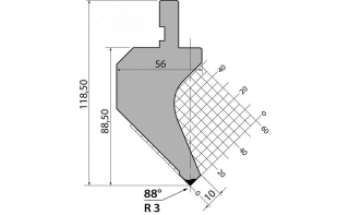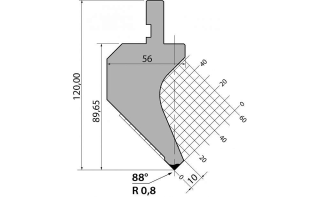 Н (высота), 135. Радиус гиба, 0.8. Градус гиба, 85. Тоннаж, 500. Материал, C45:560-710 N/mm².