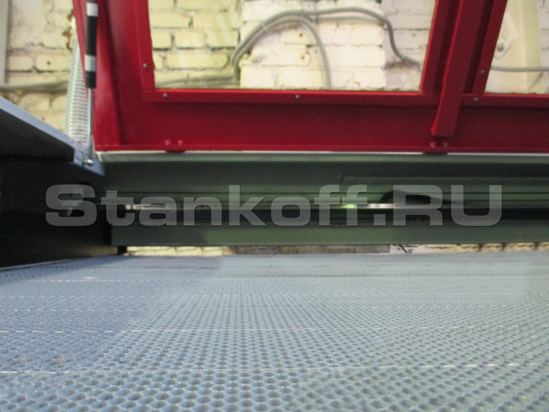 Перемещение лазерной головки осуществляется по линейным направляющим Hiwin (Тайвань)Сквозной стол