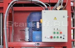 Подъем/опускание пильной рамки осуществляется с помощью электромеханического привода, для точной настройки выставляемого размера на элктроприводе предусмотрен шкив ручной доводки.
