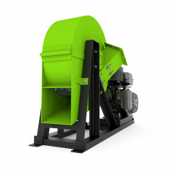 Рубительная машина предназначена для измельчения древесины хвойных, мягких лиственных пород и березы с целью получения технологической и/или энергетической щепы. Полученную в процессе измельчения щепу или опил направляют на дальнейшую грануляцию или используют в качестве продукта для отопления.