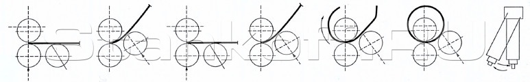 Вальцовочный станок с ассиметричным расположением валов - предназначен для предания листу цилиндрической формы различного радиуса, данное оборудование широко применяется для изготовления комплектующих вентиляции, водосточного оборудования, в случаях производства цилиндрических и конических изделий, правке плоских заготовок, подгибке кромок. Используется с толщиной листа до 6мм с эффективной функцией торможения и вальцевания.