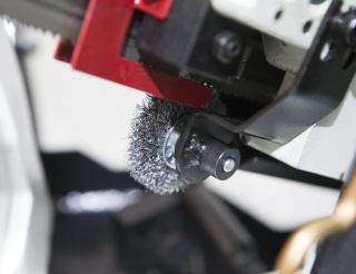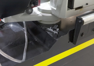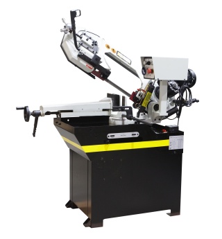 Пила опускается под собственным весом, станок оборудован дросселируемым гидравлическим цилиндром, который позволяет автоматически подстраивать скорость опускания пильной рамы в зависимости от профиля заготовки, что обеспечивает оптимальные режимы распила. Используя данную модель имеющую быстрорегулируемые тиски для резки под углом, поворачивается рама, а не заготовка. Тиски с системой быстрого отвода ускоряют процесс смены заготовки (ускоренный отвод подвижной губки происходит без вращения маховика). Зажим заготовки осуществляется тисками вручную, подача заготовки - также вручную. Наличие система СОЖ в стандартной комплектации – позволяет добиться высокой производительности.