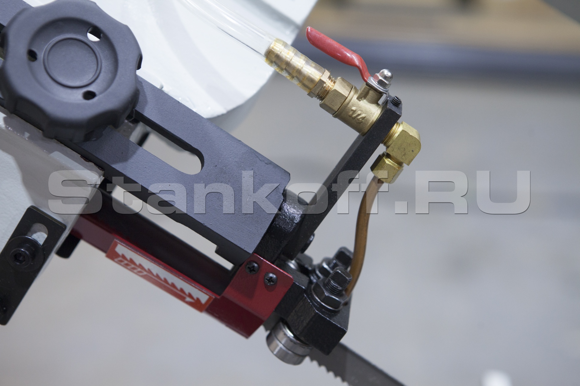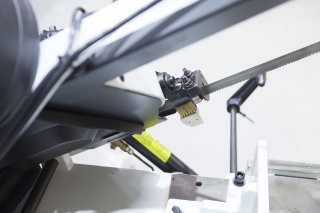 Пила опускается под собственным весом. Cтанок оборудован дросселируемым гидравлическим цилиндрами подач, который позволяет автоматически подстраивать скорость опускания пильной рамы в зависимости от профиля заготовки, что обеспечивает оптимальные режимы распила. Станкам не требуется подключение к источнику сжатого воздуха.