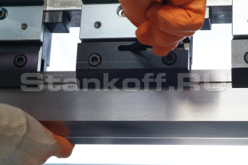 У станка под управлением CNC находятся три оси: X - позиционирование заднего упора, Y1 и Y2 – перемещение ползуна. Процесс программирования контроллера максимально упрощён и ведётся с пульта управления, за счёт чего значительно сокращается время на изготовление детали. Получив исходную информацию о размерах изделия и последовательности технологических операций, CNC самостоятельно вычисляет угол изгиба, исходные и конечные положения ползуна и заднего упора, а также их перемещение по осям.