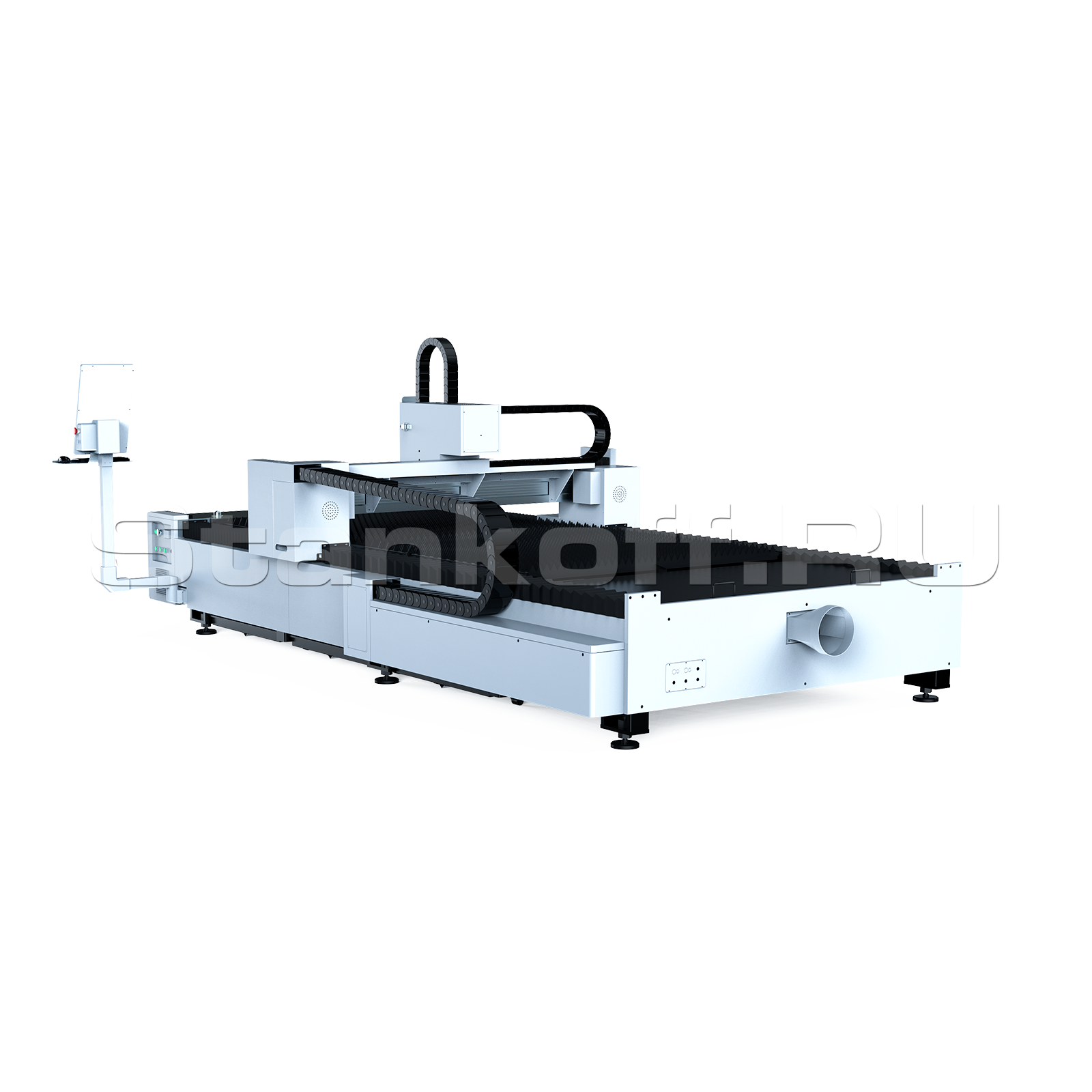 Вытяжной вентилятор используется для удаления газов горения. Для подключения вентилятора необходимо предусмотреть удаленное выключение. Если в помещении предусмотрена система очистки воздуха, можно подключить вентилятор к этой системе.Все электрические компоненты от производителя SCHNEIDER ELECTRONIC интегрированны в стойку управления ЧПУ. Из предустановленного П.О. происходит управление лазерным комплексом, а также калибровка необходимых узлов перед запуском в работу оборудования.