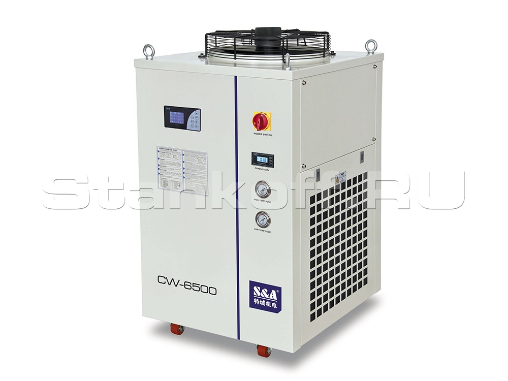 Система охлаждения с двойным фреоновым контуром, обеспечивает постоянное поддержание оптимально-рабочей температуры иттербиевого источника и режущей головы в заданном эксплуатационном диапазоне. Внешняя система водяного охлаждения оснащена деионизатором, фильтром, регулятором температуры и позволяет снизить частоту замены воды. Используется безопасный для окружающей среды хладагент. Точность регулировки температуры: ±1°С. Интеллектуальный контроллер температуры обеспечивает работу в 2 режимах, настройку различных параметров и оповещение о неисправности. Устройство оснащено рядом защит: от неисправности компрессора, от перегрузки компрессора по току, от протечки хладагента, от чрезмерного повышения/понижения температуры. Совместимость с источниками питания различных стандартов, сертифицировано CE/RoHS. Длительный срок службы, простота эксплуатации. Возможна установка нагревателя и очистителя воды.