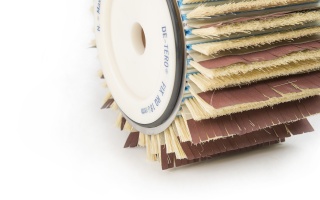 Принцип работы очень прост - в процессе работы абразив опирается на высокую щетку, далее они вместе опираются на короткую щетку, в результате чего абразив работает не кончиком, а плоскостью, что позволяет получать более высокое качество обрабатываемой поверхности и повышает производительность.